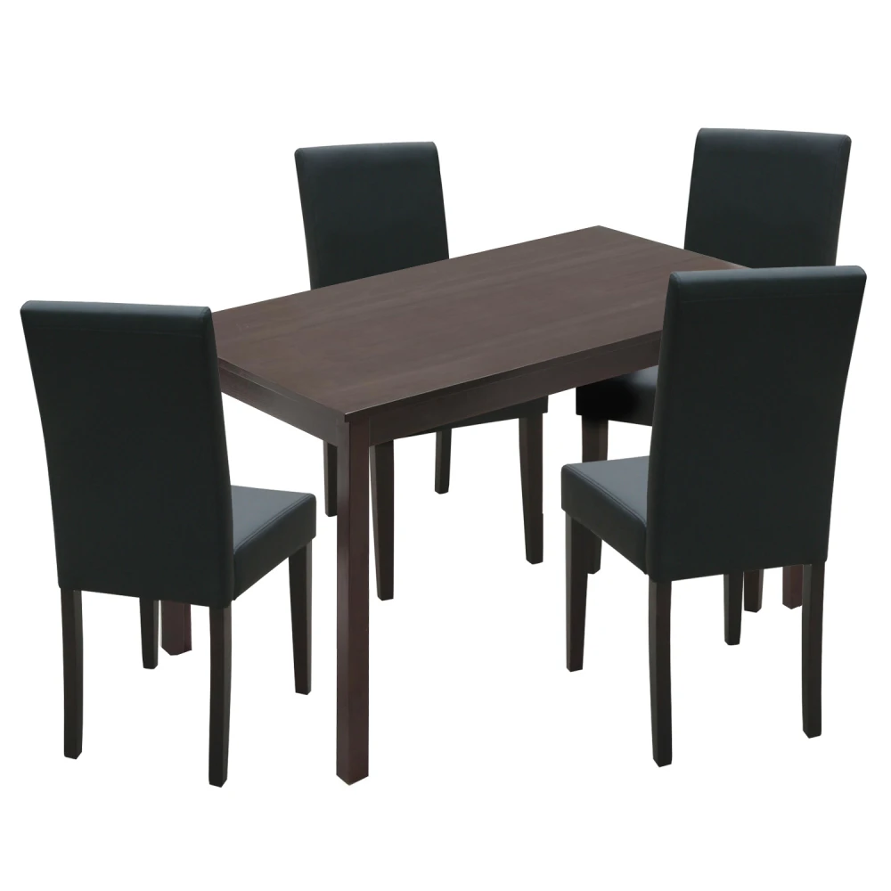 jídelní stůl 8848H a 4 jídelní židle PRIMA 3034 stůl masiv tmavohnědý lak, židle nohy z masivu, barevné provedení tmavě hnědý lak potah kůže – imitace, barevné provedení černá, výška sedu 47 cm rozměr stolu (š/h/v) 118 × 75 × 73 cm, rozměr židle (š/h/v) 42 × 48 × 92 cm