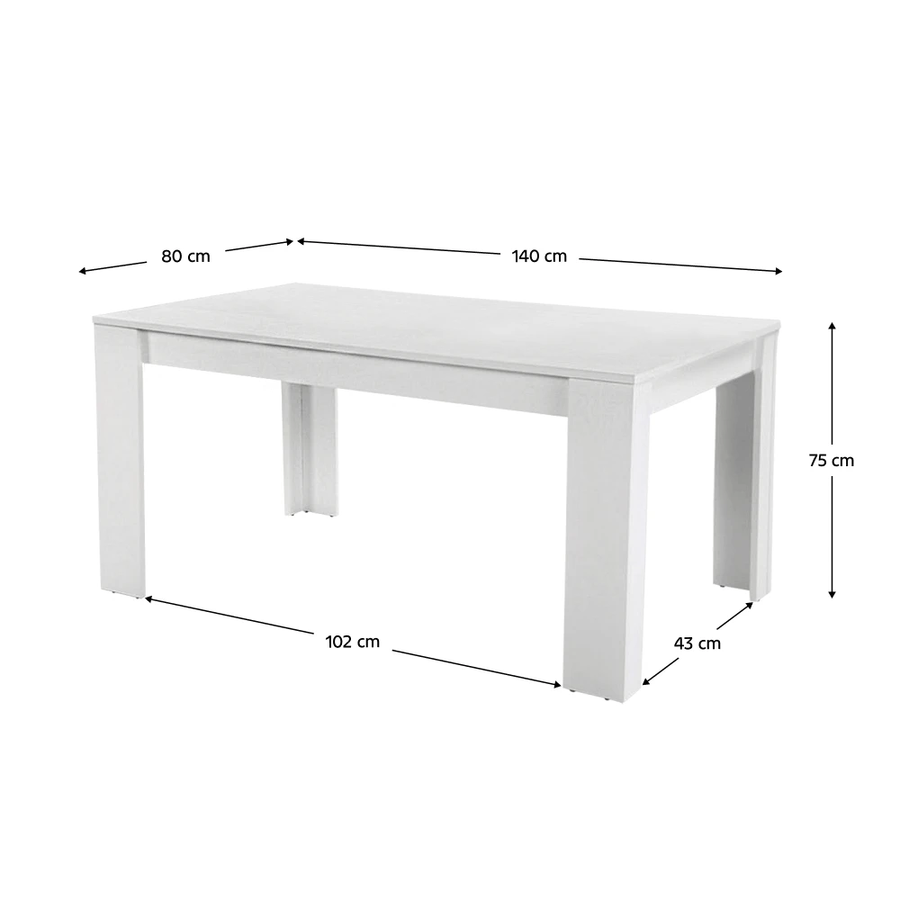 Jídelní stůl, bílá, 140x80 cm, TOMY NEW
