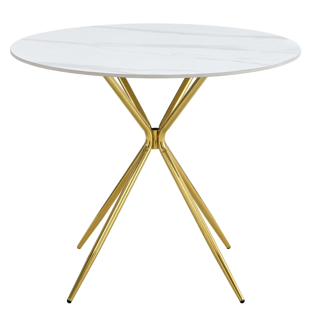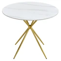 Jídelní stůl, bílý mramor/gold chrom zlatá, průměr 90 cm, MEKNER