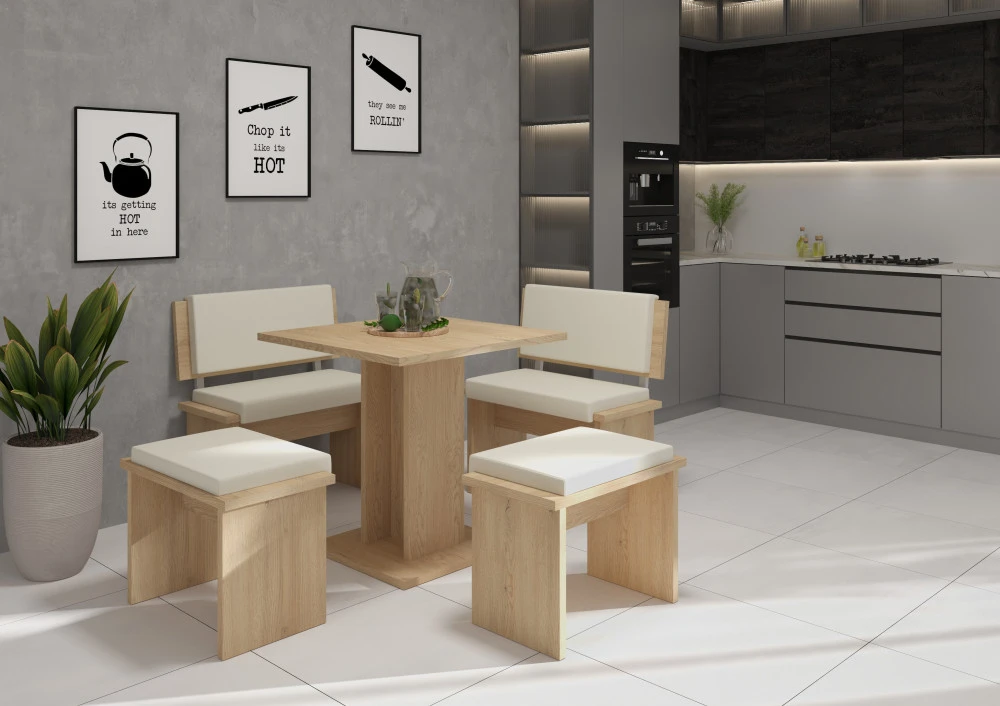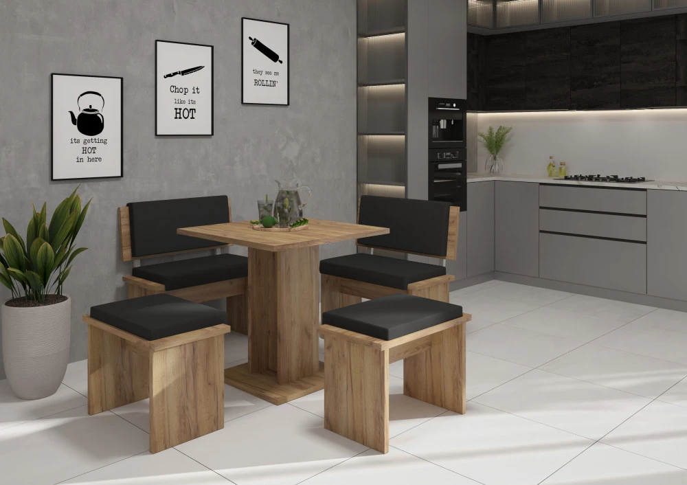 Malý jídelní stůl z kolekce Bond je vyroben z lamina o síle 16 mm. Velmi moderní vzhled a originální tvary jsou hlavním znakem této kolekce. Lze volit barevnou variantu dřeva.
