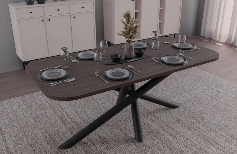 Jídelní stůl Osman je vyrobený v nadčasovém stylu, který se hodí do každé moderní domácnosti. Deska stolu je z lamina tl.15 mm, nohy jsou černé kovové ve stylu "pavouk". Stůl se skvěle hodí nejen do jídelny, ale i do kuchyně nebo do jídelního koutu v obývacím pokoji. Stůl je dodávaný v demontu. Součástí balení je montážní návod včetně všech spojovacích prvků.