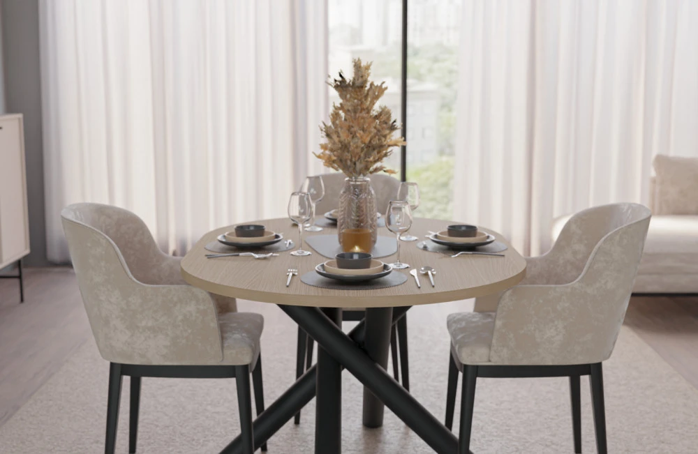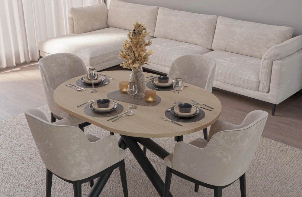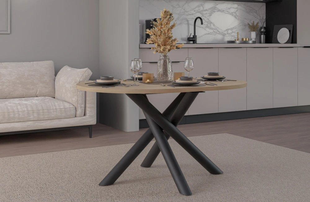 Jídelní stůl Osman je vyrobený v nadčasovém stylu, který se hodí do každé moderní domácnosti. Deska stolu je z lamina tl.15 mm, nohy jsou černé kovové ve stylu "pavouk". Stůl se skvěle hodí nejen do jídelny, ale i do kuchyně nebo do jídelního koutu v obývacím pokoji. Stůl je dodávaný v demontu. Součástí balení je montážní návod včetně všech spojovacích prvků.