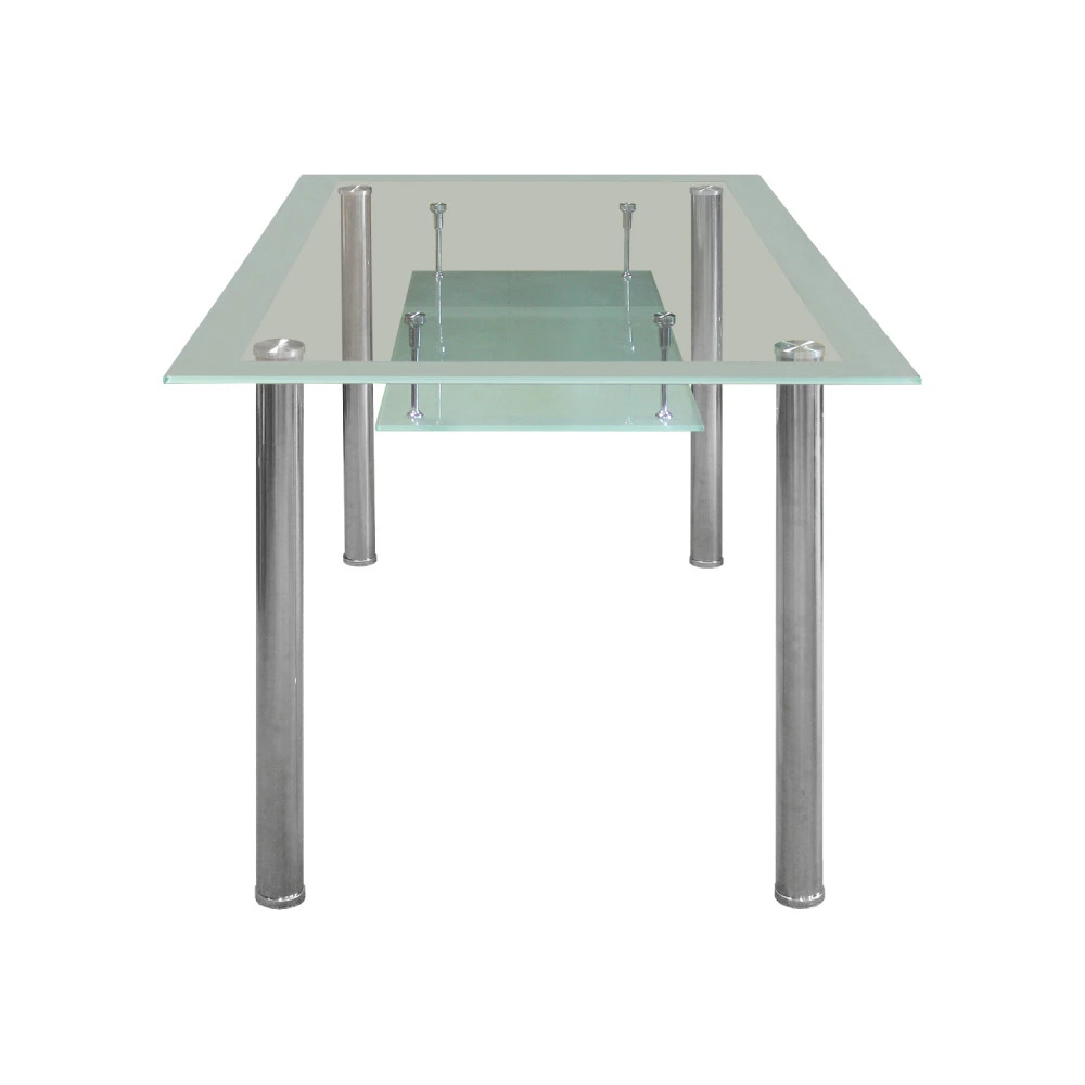 provedení v kombinaci kov / tvrzené sklo kovové pochromované nohy odkládací police pískované tvrzené sklo