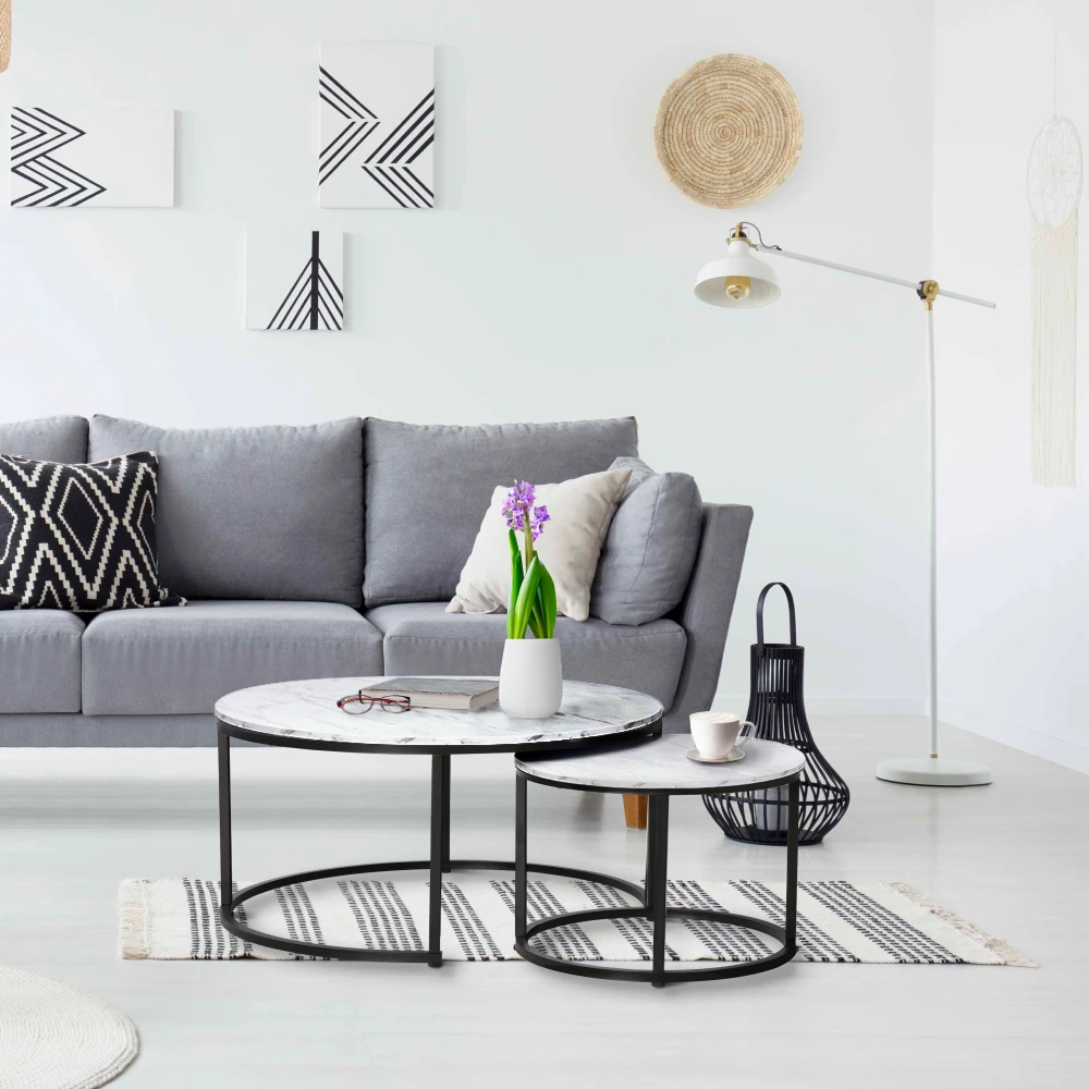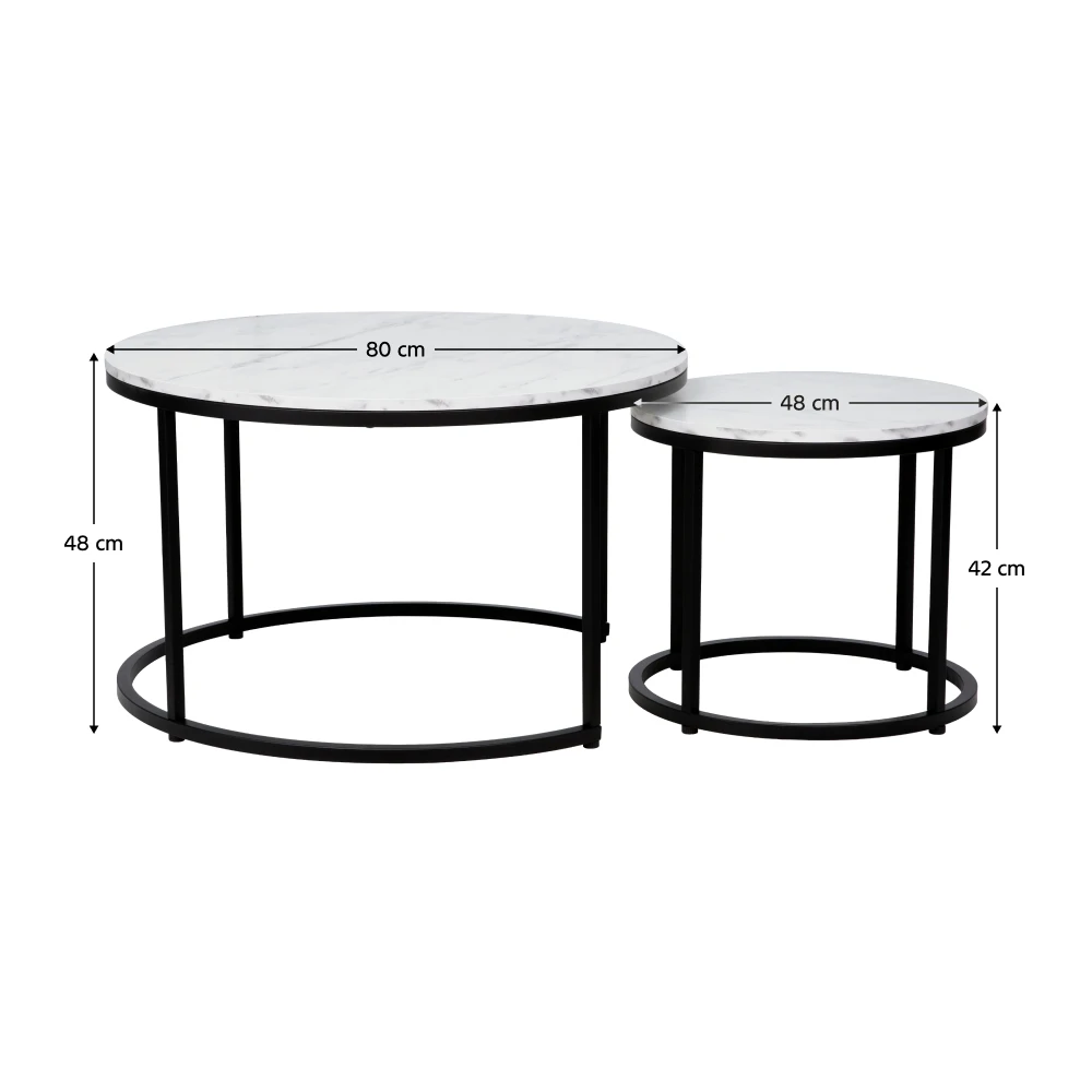 Konferenční stolky, set 2 ks, bílá/černá, CIRKO