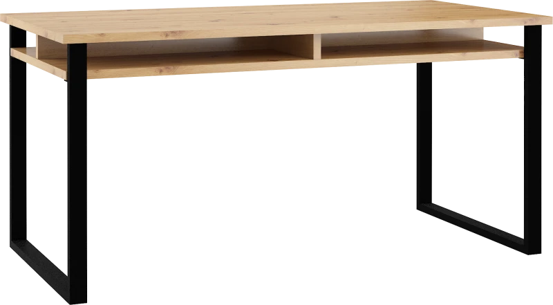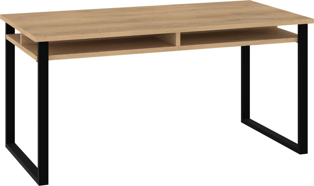 Stůl má odkládací prostory a kovové nožky vysoké 73 cm. Stůl není rozkládací.