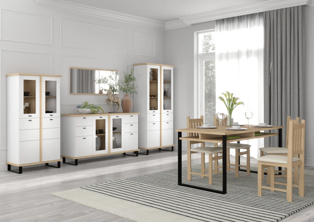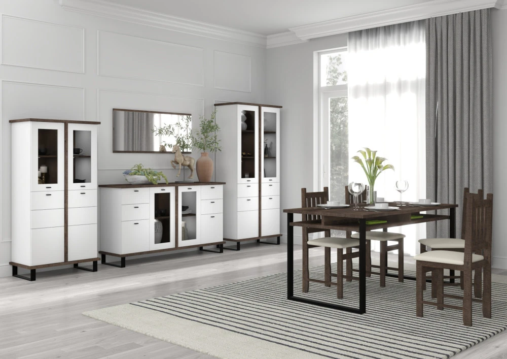 Vitríny jsou vybavené kouřovými skly, které ještě více zdůrazní originální vzhled systému. Černou barvu mají i úchyty, jež doplňují barevné kombinace reflektující moderní trendy v bydlení. S kolekcí Cross nemůžete šlápnout vedle!