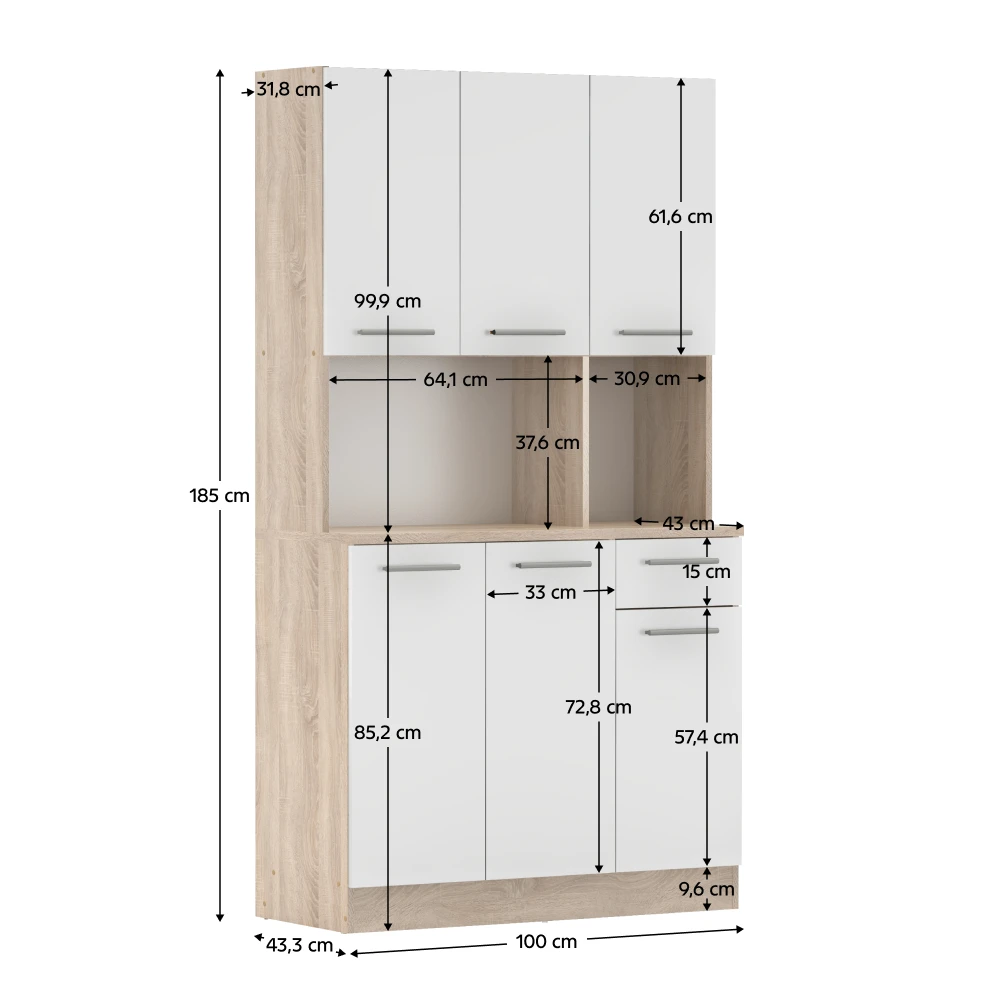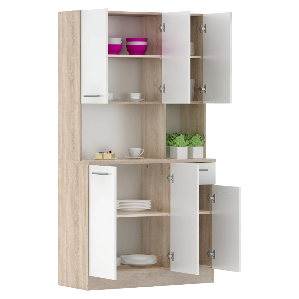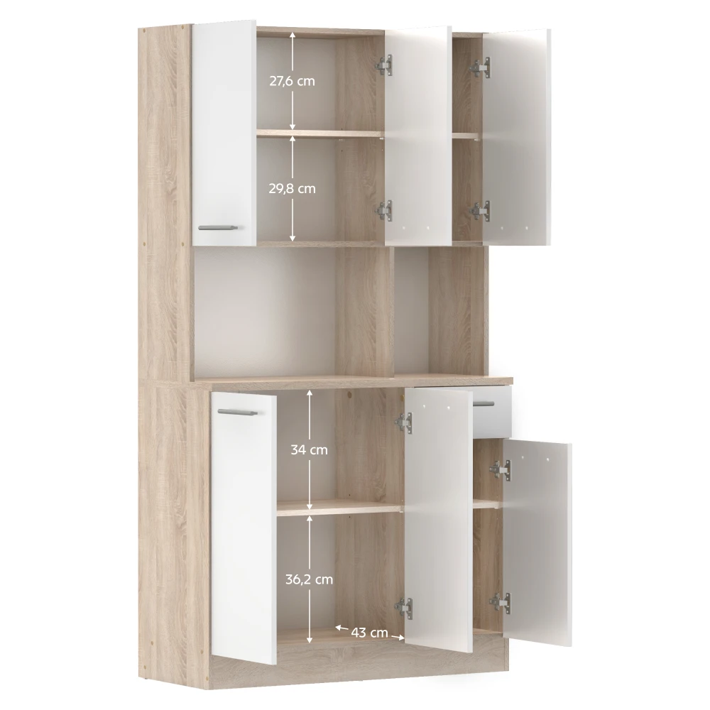 Šestidveřový kredenc, dub sonoma / bílá, PELION NEW