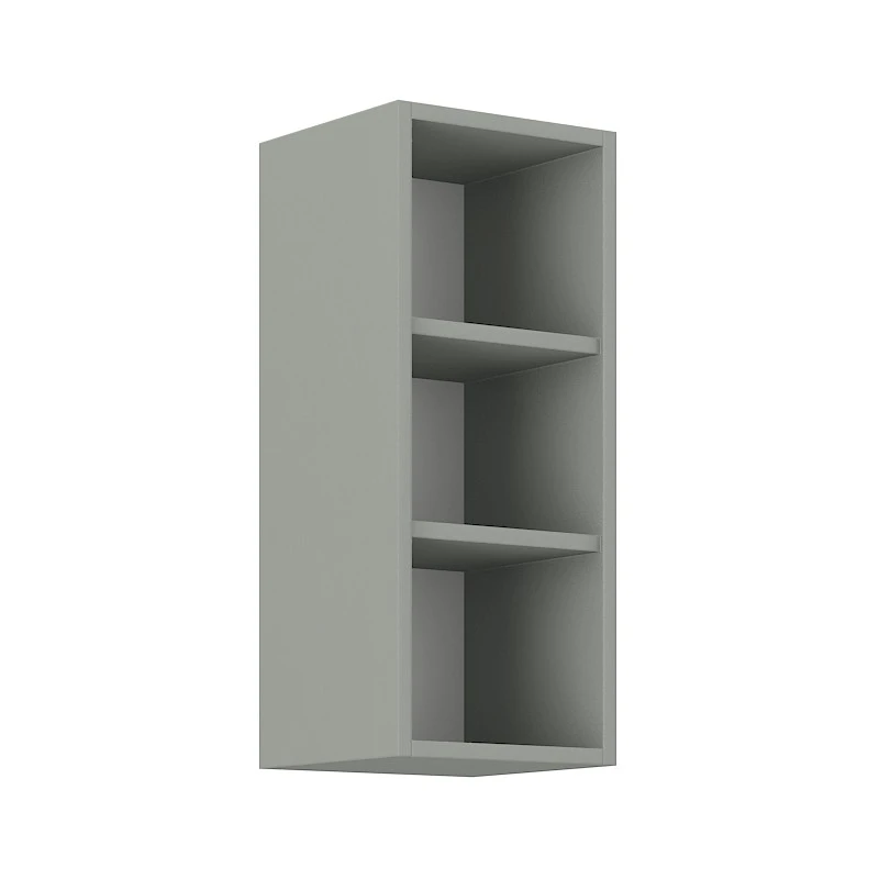 Tato otevřená horní regálová skříňka je perfektní k oživení Vaší kuchyně. Je vyrobena z lamina tloušťky 16 mm šedé barvy. Poskládejte si z naší bohaté nabídky skříněk moderní a designovou kuchyň podle Vašich představ. Skříňka je dodávaná v demontu. Součástí je montážní plánek včetně všech potřebných spojovacích materiálů. V doplňkových fotografiích najdete pro inspiraci fotky kuchyní, které jsou z těchto skříněk sestaveny.