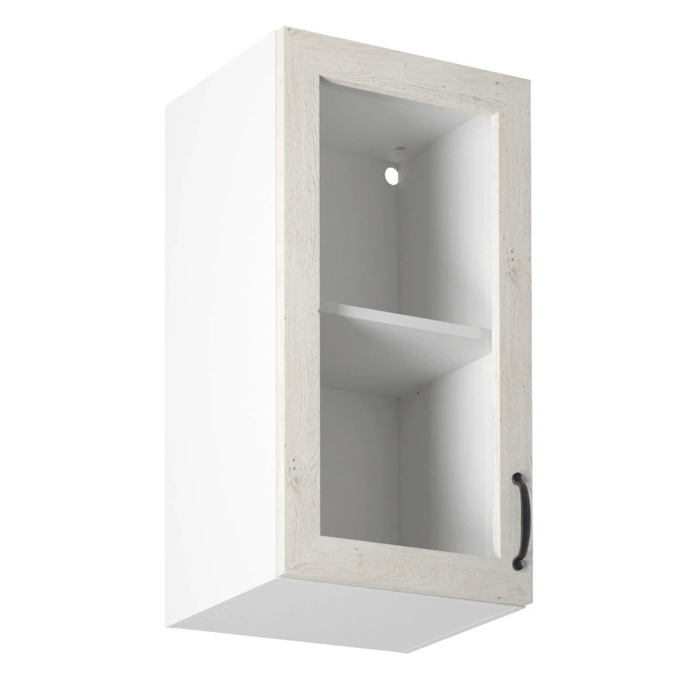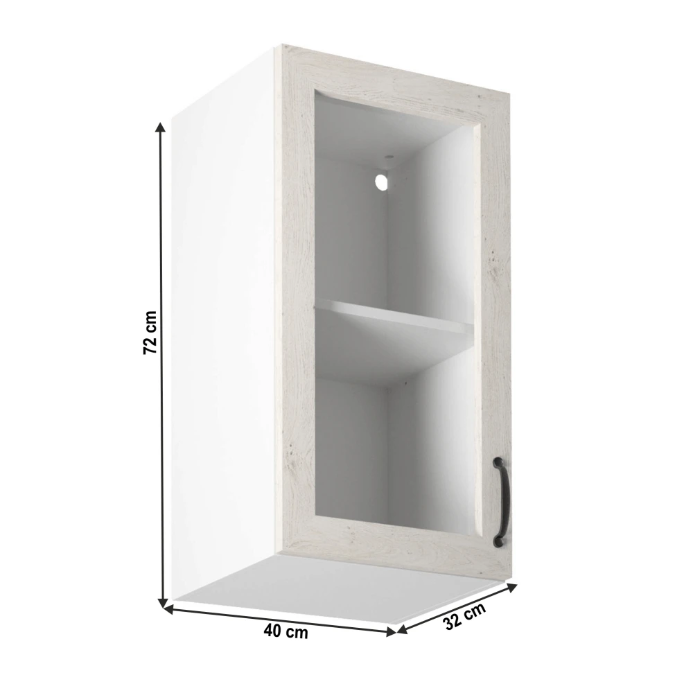 Horní skříňka se sklem, bílá / sosna skandinávská, levá, ROYAL G40S