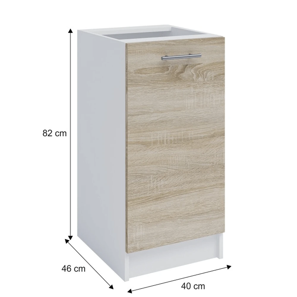 dolní skříňka S - 40, materiál: DTD laminovaná, barevné provedení: dub sonoma / bílá, korpus: bílá, dvířka: dub sonoma. Rozměry ŠxVxH: 40x82x46 cm. Dodáváno v demontu.