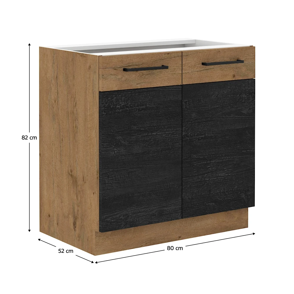 Spodní skříňky jsou dodávány včetně dolní lišty, bez pracovní desky. Možnost dokoupit pracovní desku dub lancelot v ceně: 1.450, - Kč / m. Možnost dokoupit univerzální L / P dřez LAY ON.