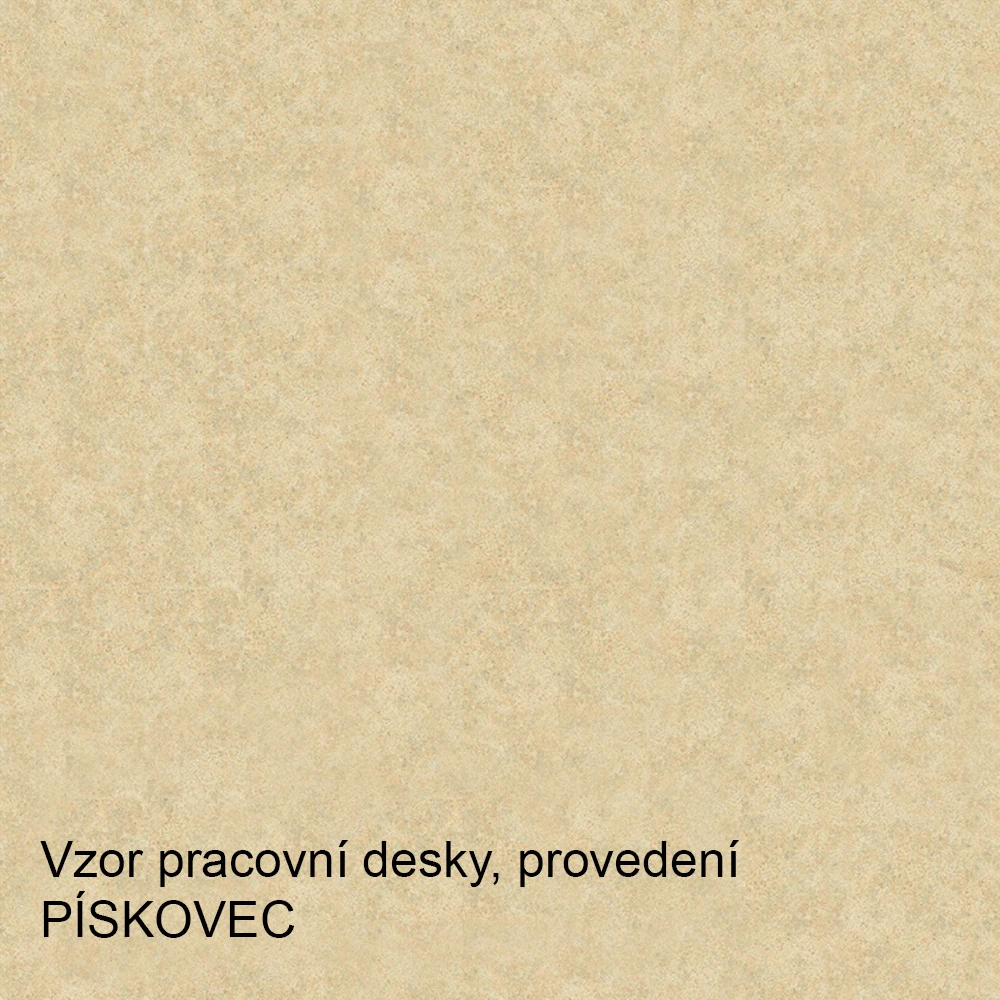 Spodní skříňky jsou dodávány bez pracovní desky. Můžete si objednat pracovní desku pískovec k provedení ořech Milano - tloušťka 28mm za 1.290 Kč/bm a nebo pracovní desku dub Lancelot k provedení sosna andersen - tloušťka 38 mm za 1.490 Kč/bm.