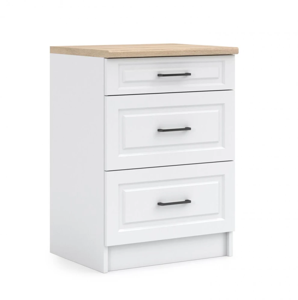 Kuchyňská skříňka Irma je vyrobená ve venkovském stylu, který se hodí do kuchyně v paneláku i v rodinném domě. Tento styl má jedinečnou schopnost proměnit Vaši kuchyň v útulnou a zároveň funkční místnnost, kde bude radost vařit i péct. Korpus skříňky je vyrobený z lamina 18 mm s hranami ABS a dvířka z MDF 16 mm. Cena je uvedena za skříňku BEZ pracovní desky. Desku je možno dokoupit zvlášť podle rozměru skříňky. Prohlédněte si nabídku všech skříněk a vytvořte si kuchyň dle vlastních představ. Může být rohová, rovná, krátká i dlouhá. Fantazii se meze nekladou. V doplňkových fotografiích najdete pro inspiraci fotografie kuchyní, které jsou z těchto skříněk sestaveny. Skříňka je dodávaná v demontu. Součástí je montážní plánek včetně všech potřebných spojovacích materiálů.