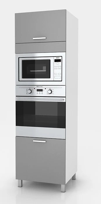 Moderní kuchyňská skříňka na vestavnou troubu a mikrovlnku, kterou je možné objednat v matu nebo ve vysokém lesku. Korpusy skříněk jsou v bílé barvě. Úchyty jsou kovové typu reling v šedém provedení. Skříňky jsou vyrobeny z foliované MDF. Prostor ve skříňce mimo vestavnou část se ideálně hodí jako potravinová skříňka na trvanlivé potraviny. Barvu si můžete vybrat ze vzorníku viz obrázky v doplňkových fotografiích. Svou vysněnou kuchyň si můžete sestavit buď z jednotlivých skříněk nebo skříňky dokoupit ke kuchyňské sestavě. Skříňka je dodávána v demontu.