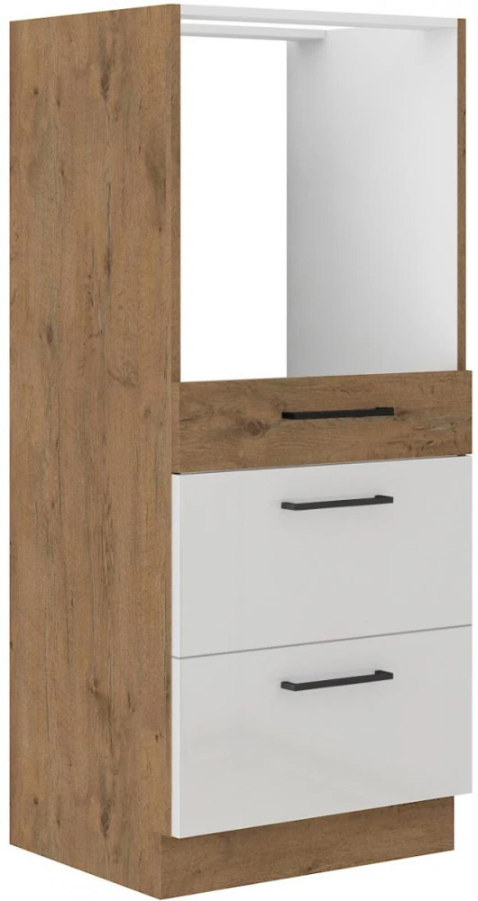 Kuchyňská potravinová skříň s prostorem pro vestavnou troubu 60DPS-145-3S je vyrobena z lamina v dekoru dub lancelot v kombinaci s bílým vysokým leskem. Tato skříň má 3 šuplíky. Nabízí dostatek úložného prostoru nejen na potraviny. Prohlédněte si širokou nabídku skříněk a vytvořte si kuchyň dle vlastních představ. Může být rohová, rovná, krátká i dlouhá. Fantazii se meze nekladou. V doplňkových fotografiích najdete pro inspiraci fotky kuchyní, které jsou z těchto skříněk sestaveny. Skříňka je dodávaná v demontu. Součástí je montážní plánek včetně všech potřebných spojovacích materiálů.