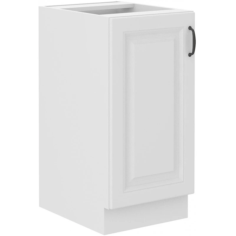 Jednodvéřová spodní kuchyňská skříňka je vyrobena z lamina tloušťky 16 mm v bílé barvě. Vnitřek skříňky je tvořen jednou praktickou policí. Dvířka mají černý kovový úchyt a lze ho namontovat horizontálně nebo vertikálně (délka 124mm). Dále jsou dvířka vybavena systémem tichého zavírání. Skříňka je vyrobena z kvalitních MDF desek. Poskládejte si z naší bohaté nabídky skříněk moderní a designovou kuchyň podle Vašich představ. Skříňka je dodávaná v demontu. Součástí je montážní plánek včetně všech potřebných spojovacích materiálů.