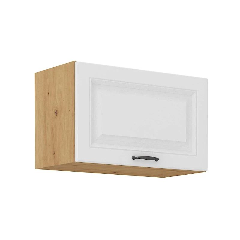 Tato kuchyňská skříňka s horním otvíráním je vyrobena z lamina tloušťky 16 mm v bílé barvě. Korpus skříňky je v provedení dub artisan a vnitřek skříňky má bílou barvu. Skříňka je vyrobena z kvalitních MDF desek a poskytne Vám dostatek místa. Skříňka má černý kovový úchyt (délka 124mm) a dvířka jsou vybavena systémem tichého zavírání. V doplňkových fotografiích naleznete další možnosti a inspiraci k sestavení Vaší vysněné kuchyně. Poskládejte si z naší bohaté nabídky skříněk moderní a designovou kuchyň podle Vašich představ. Skříňka je dodávaná v demontu. Součástí je montážní plánek včetně všech potřebných spojovacích materiálů.