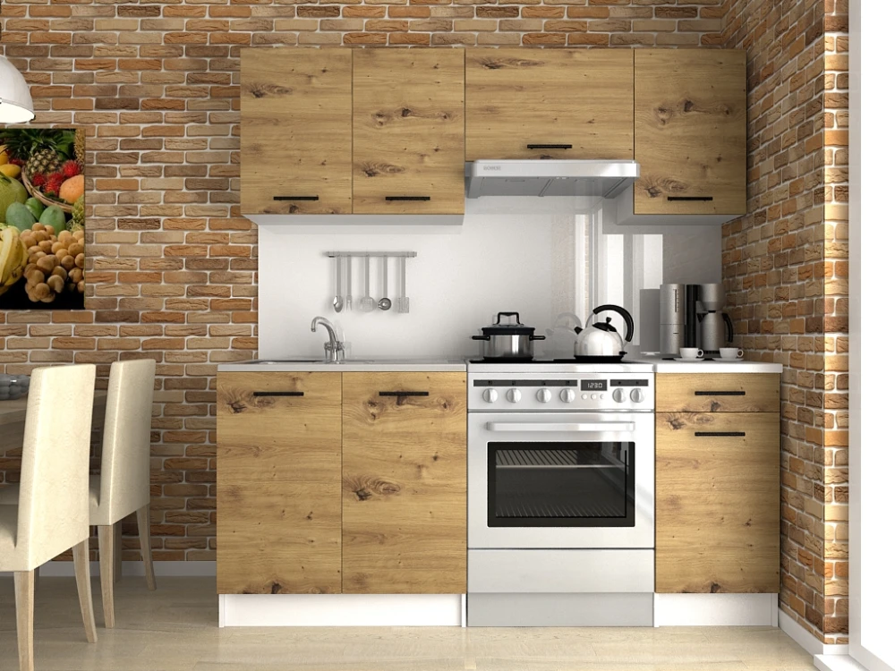 Kuchyňská linka Luigi je ideální volbou pro Vaši kuchyň. Je vyrobená z lamina, které je odolné a snadné na údržbu. Díky svým rozměrům je vhodná do garsonek a malometrážních kuchyní. Skříňky si můžete sestavit libovolně. Skříňky nabízejí dostatek úložného prostoru. Kuchyňská linka je dodávaná v demontu. Součástí balení je montážní plánek včetně všech potřebných spojovacích materiálů. Cena je uvedena za sestavu vyobrazenou na úvodní fotografii BEZ PRACOVNÍ DESKY. Vyobrazené spotřebiče, dřez a dekorace nejsou v ceně.