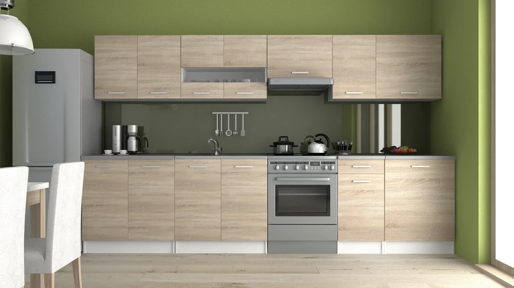 Kuchyňská linka Luigi je ideální volbou pro Vaši kuchyň. Je moderní a zároveň i praktická. Skříňky nabízejí dostatek úložného prostoru. Je vyrobená z lamina, které je odolné a snadné na údržbu. Díky svým rozměrům je vhodná i do malých kuchyní. Skříňky si můžete sestavit libovolně. Kuchyňská linka je dodávaná v demontu. Součástí balení je montážní plánek včetně všech potřebných spojovacích materiálů. Cena je uvedena za sestavu vyobrazenou na úvodní fotografii BEZ PRACOVNÍ DESKY. Kuchyň nabízíme v několika rozměrech i dekorech.Vyobrazené spotřebiče, dřez a dekorace nejsou v ceně.