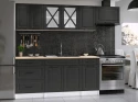 Kuchyňská linka Magda je vyrobená ve venkovském stylu, který se hodí do kuchyně v paneláku i v rodinném domě. Tento styl má jedinečnou schopnost proměnit Vaši kuchyň v útulnou a zároveň funkční místnost, kde bude radost vařit i péct. Kuchyňská linka Magda nabízí dostatek úložného i pracovního prostoru. Všechny skříňky jsou samostatné, takže si je můžete sestavit tak, jak Vám to vyhovuje. Korpusy skříněk jsou vyrobené z lamina 18 mm s hranami ABS a dvířka jsou MDF 16mm. Všechny skříňky jsou dodávány v demontu. Součástí balení je montážní plánek včetně všech potřebných spojovacích prvků. Cena je uvedna za sestavu vyobrazenou na úvodní fotografii BEZ PRACOVNÍ DESKY, s úchytkami, které jsou vyobrazeny v doplňkových fotografiích. Pracovní desku lze dokoupit nad každou skříňku zvlášť podle její šíře. Vyobrazené spotřebiče, dřez, baterie, doplňky a dekorace nejsou v ceně. Kuchyň bude dodaná s bílými korpusy a dvířky v odstínu grafit.