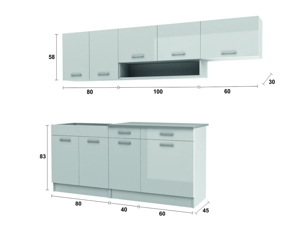 Kuchyňská linka Samara v moderním designu je ideální volbou pro panelákové kuchyně, ale hodí se i do kuchyní v rodinných domech. Korpusy skříněk jsou bílé, dvířka jsou ve vysokém lesku v několika odstínech. Skříňky jsou dodávány v demontu. Součástí je montážní plánek včetně všech potřebných spojovacích materiálů. Cena je uvedna za sestavu vyobrazenou na úvodní fotografii BEZ PRACOVNÍ DESKY. Skříňky jsou samostatné, takže si kuchyň můžete sestavit buď tak, jak je vyobrazeno na fotografii, nebo si je můžete sestavit podle toho, jak Vám to bude vyhovovat. Spotřebiče,baterie a dekorace nejsou v ceně.