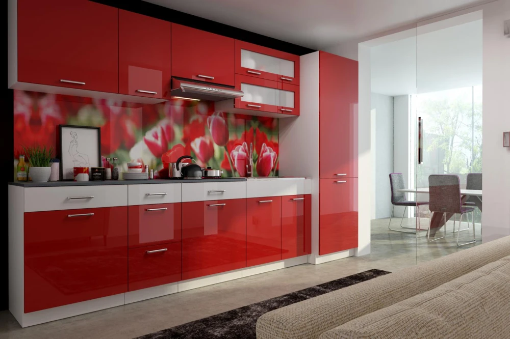 Kuchyňská linka Sanader je praktická, účelná a navíc za rozumnou cenu. Kuchyňská linka je důležitým vybavením Vaší kuchyně, ale také designovým prvkem interiéru. Ať už to bude v paneláku, nebo rodinném domě, určitě se bude ve Vaší kuchyni krásně vyjímat. Skříňky nabízejí dostatek úložného prostoru na nádobí i dostatek pracovního prostoru. Kuchyň je vyrobená z lamina, které je odolné a snadné na údržbu. Korpusy skříněk jsou bílé, dvířka jsou ve vysokém lesku v trendy barvách. Skříňky jsou samostatné, takže si kuchyň můžete sestavit buď tak, jak je vyobrazeno na fotografii, nebo si je můžete sestavit podle toho, jak Vám to bude vyhovovat. Kuchyň je dodávána v demontu BEZ PRACOVNÍ DESKY. Součástí je montážní plánek včetně všech potřebných spojovacích materiálů. Cena je uvedena za sestavu vyobrazenou na úvodní fotografii. Spotřebiče,baterie a dekorace nejsou v ceně.