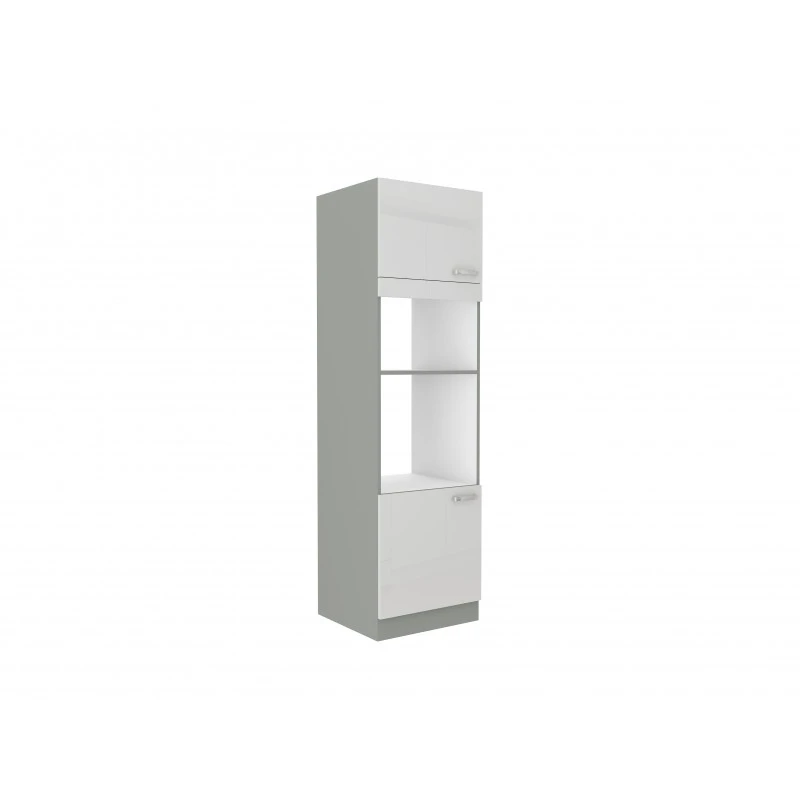 Vysoká kuchyňská skříň je určena pro vestavěnou mikrovlnou troubu a vestavěnou troubu. Vrchní skříňka nad skříní má zabudovanou jednu polici. Skříň je vyrobena z lamina tloušťky 16 mm bílé lesklé barvy a bude dalším krásným kouskem ve Vaší kuchyňské sérii. Korpus skříňky je v šedém provedení. Na dvířkách jsou kovové úchytky ( délka 135mm) a dveře jsou vybaveny systémem tichého zavírání. Skříňka je vyrobena z kvalitních MDF desek. Poskládejte si z naší bohaté nabídky skříněk moderní a designovou kuchyň podle Vašich představ. Skříňka je dodávaná v demontu. Součástí je montážní plánek včetně všech potřebných spojovacích materiálů.