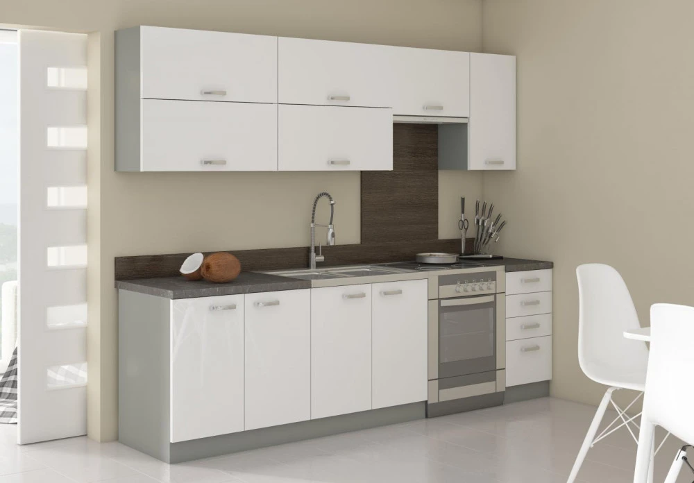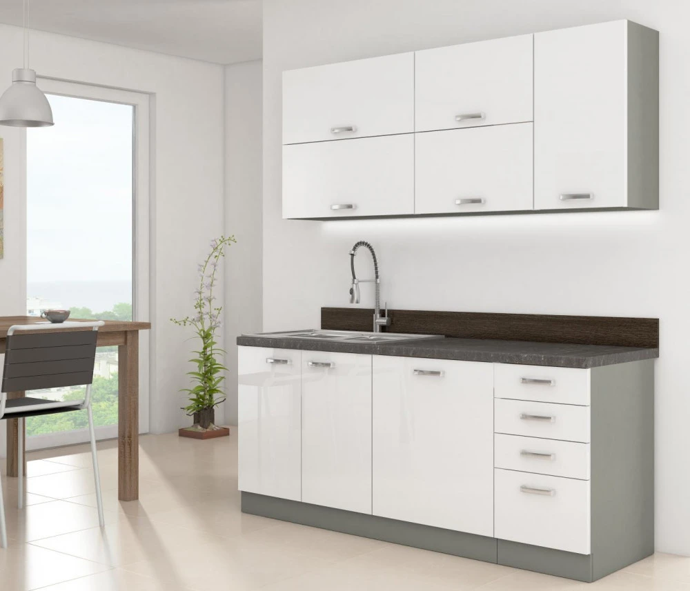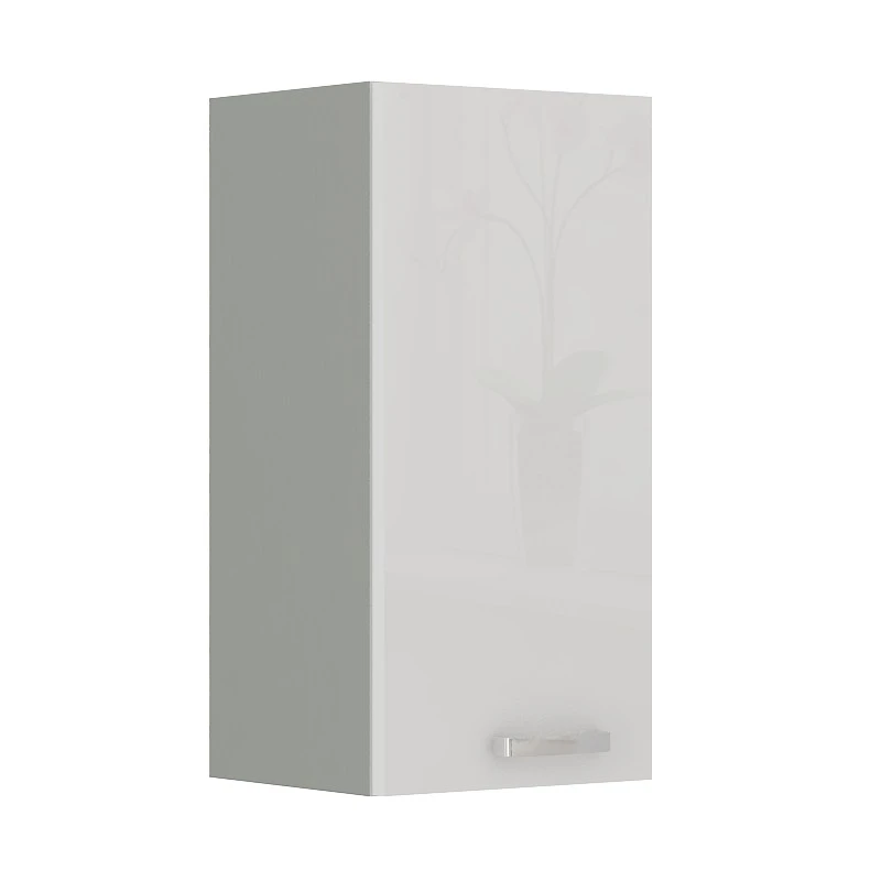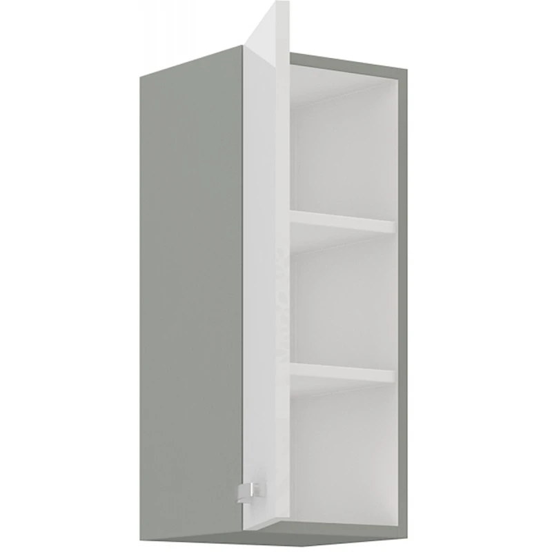 Kuchyňská skříňka je vyrobena z lamina tloušťky 16 mm bílé lesklé barvy. Korpus skříňky je v šedém provedení. Skříňka je vyrobena z kvalitních MDF desek a uvnitř najdete dvě police, které poskytnou dostatek místa. Skříňka má kovový úchyt (délka 135mm) a dvířka jsou vybavena systémem tichého zavírání. Poskládejte si z naší bohaté nabídky skříněk moderní a designovou kuchyň podle Vašich představ. V doplňkových fotografiích najdete pro inspiraci fotky kuchyní, které jsou z těchto skříněk sestaveny. Skříňka je dodávaná v demontu. Součástí je montážní plánek včetně všech potřebných spojovacích materiálů.