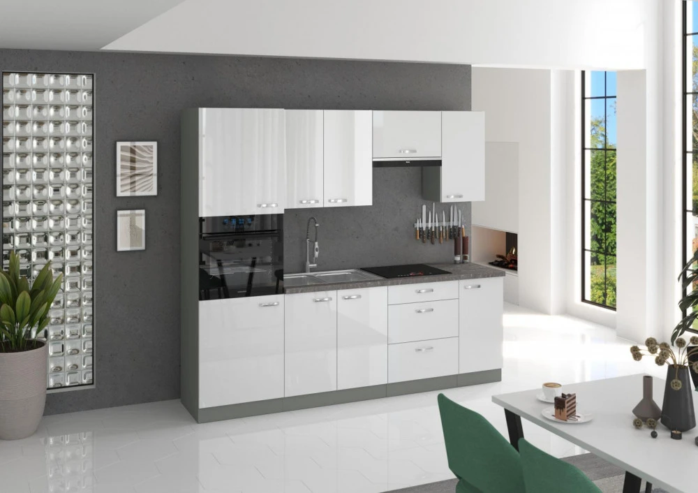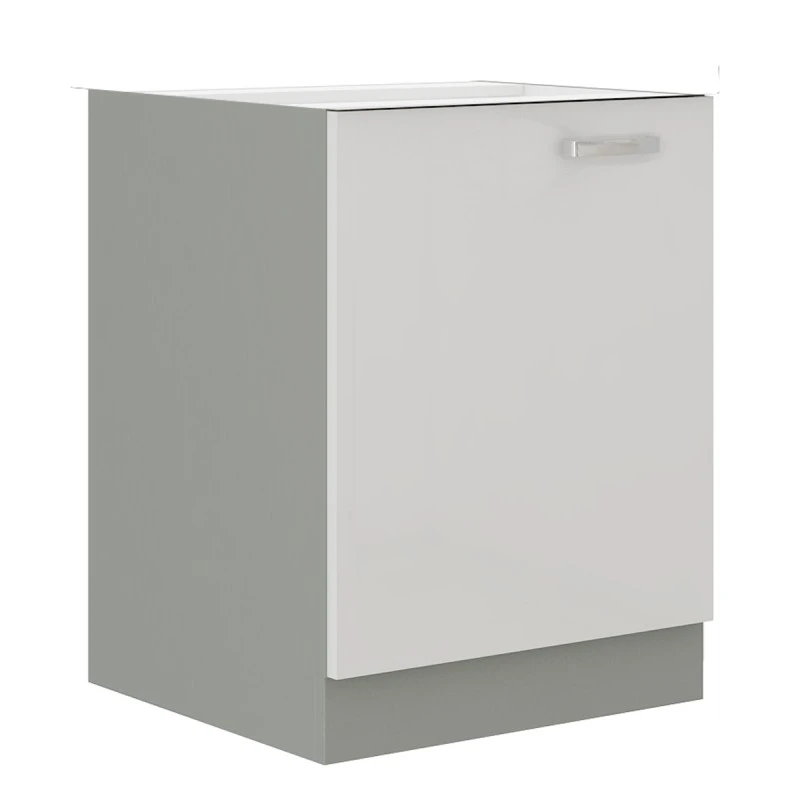 Kuchyňská skříňka je vyrobena z lamina tloušťky 16 mm bílé lesklé barvy. Korpus skříňky je v šedém provedení. Skříňka je vyrobena z kvalitních MDF desek a uvnitř najdete jednu polici. Skříňka má kovový úchyt (délka 135mm) a dvířka jsou vybavena systémem tichého zavírání. Poskládejte si z naší bohaté nabídky skříněk moderní a designovou kuchyň podle Vašich představ. V doplňkových fotografiích najdete pro inspiraci fotky kuchyní, které jsou z těchto skříněk sestaveny. Skříňka je dodávaná v demontu. Součástí je montážní plánek včetně všech potřebných spojovacích materiálů.