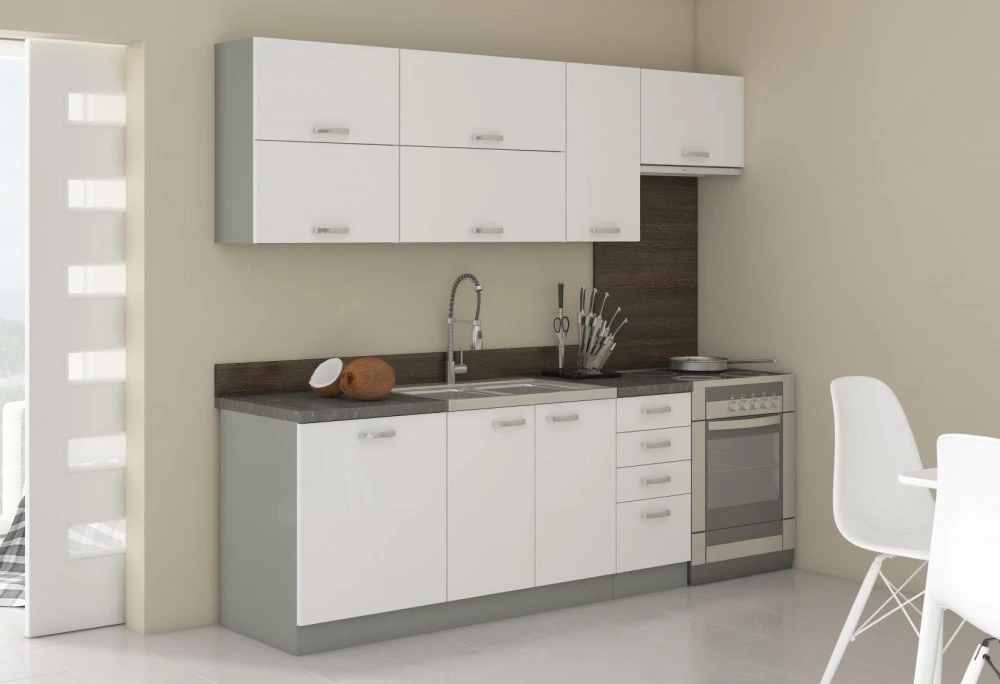 Elegantní a prakticky řešená horní kuchyňská skříňka je vyrobena z lamina tloušťky 16 mm bílé lesklé barvy. Korpus skříňky je v šedém provedení. Skvěle doplní další kuchyňský nábytek z této série a ve Vaší kuchyni nesmí chybět. Skříňka je vyrobena z kvalitních MDF desek a poskytne Vám dostatek úložného prostoru. Skříňka má kovový úchyt (délka 135mm) a dvířka jsou vybavena systémem tichého zavírání. Poskládejte si z naší bohaté nabídky skříněk moderní a designovou kuchyň podle Vašich představ. V doplňkových fotografiích najdete pro inspiraci fotky kuchyní, které jsou z těchto skříněk sestaveny. Skříňka je dodávaná v demontu. Součástí je montážní plánek včetně všech potřebných spojovacích materiálů.