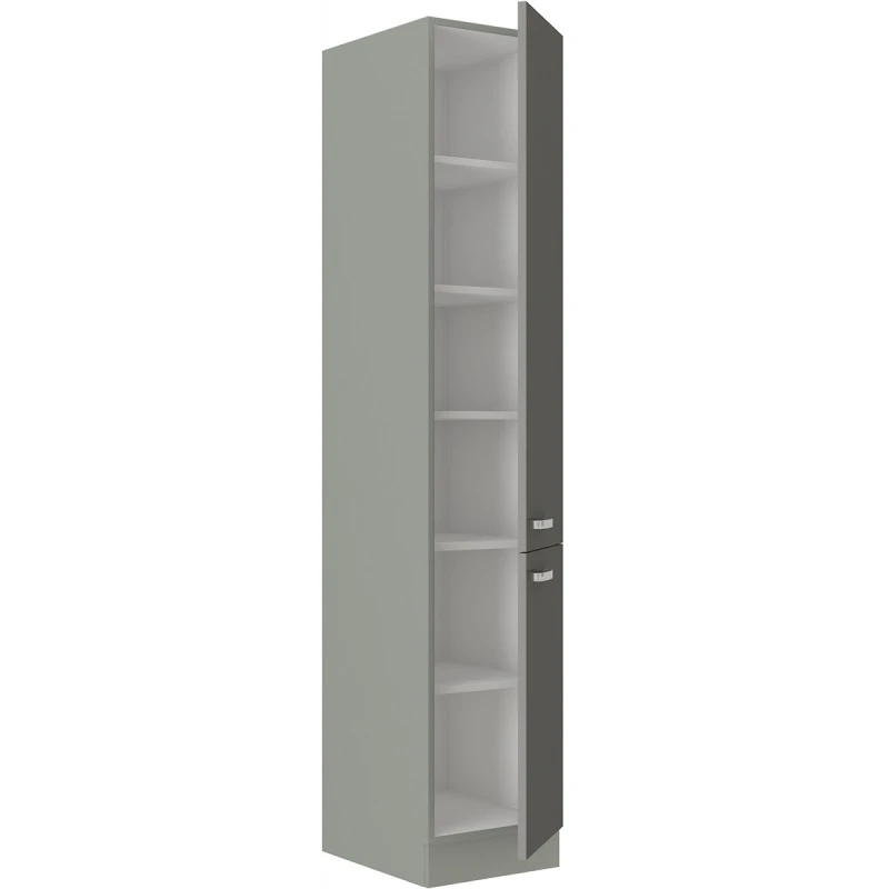 Vysoká dvoudvéřová spodní kuchyňská skříňka je vyrobena z lamina tloušťky 16 mm šedé lesklé barvy. Korpus skříňky je v šedém provedení a vnitřek je bílý. Skříňka je vyrobena z kvalitních MDF desek s kovovým úchytem (délka 135mm). Vnitřek skříňky obsahuje celkem pět polic, které Vám poskytnou dostatek místa k uskladnění všeho, co budete v kuchyni potřebovat. Dvířka jsou vybavena systémem tichého zavírání. Poskládejte si z naší bohaté nabídky skříněk moderní a designovou kuchyň podle Vašich představ. Skříňka je dodávaná v demontu. Součástí je montážní plánek včetně všech potřebných spojovacích materiálů.