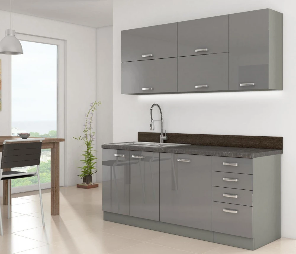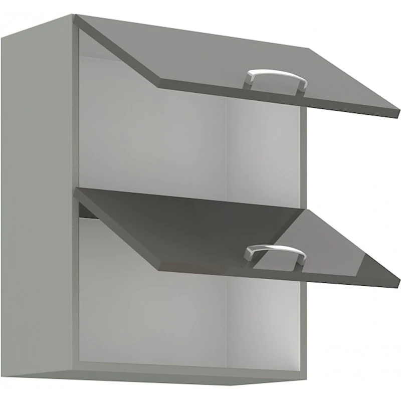 Prakticky řešená dvojí horní kuchyňská skříňka je vyrobena z lamina tloušťky 16 mm šedé lesklé barvy. Korpus skříňky je v šedém provedení a vnitřek má bílou barvu. Skvěle doplní další kuchyňský nábytek z této série a ve Vaší kuchyni nesmí chybět. Skříňka je vyrobena z kvalitních MDF desek a poskytne Vám dostatek úložného prostoru. Skříňka má kovový úchyt (délka 135mm) a dvířka jsou vybavena systémem tichého zavírání. Poskládejte si z naší bohaté nabídky skříněk moderní a designovou kuchyň podle Vašich představ. Skříňka je dodávaná v demontu. Součástí je montážní plánek včetně všech potřebných spojovacích materiálů.