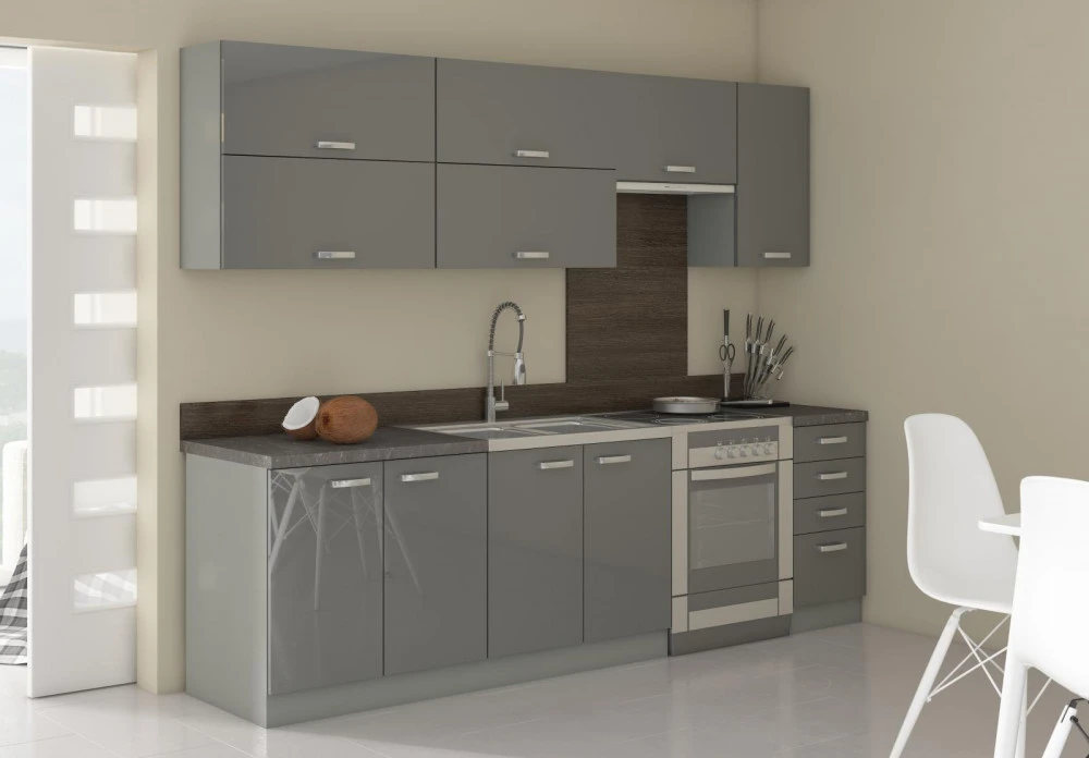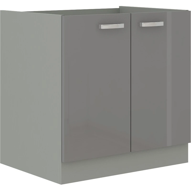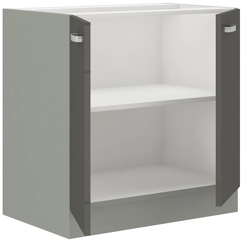Spodní dvoudvéřová kuchyňská skříňka je vyrobena z lamina tloušťky 16 mm šedé lesklé barvy. Korpus skříňky je v šedém provedení. Vnitřek skříňky je tvořen jednou širokou praktickou policí. Dvířka mají kovové úchytky (délka 135mm). Dále jsou dvířka vybavena systémem tichého zavírání. Skříňka je vyrobena z kvalitních MDF desek. Poskládejte si z naší bohaté nabídky skříněk moderní a designovou kuchyň podle Vašich představ. Skříňka je dodávaná v demontu. Součástí je montážní plánek včetně všech potřebných spojovacích materiálů.