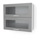 Moderní kuchyňská skříňka, kterou je možné objednat v matu nebo ve vysokém lesku. Korpusy skříněk jsou v bílé barvě. Úchyty jsou kovové typu reling v šedém provedení. Skříňky jsou vyrobeny z foliované MDF. Dvířka skříňky jsou prosklená a výklopná. Barvu si můžete vybrat ze vzorníku viz obrázky v doplňkových fotografiích. Svou vysněnou kuchyň si můžete sestavit buď z jednotlivých skříněk nebo skříňky dokoupit ke kuchyňské sestavě. Skříňka je dodávána v demontu.
