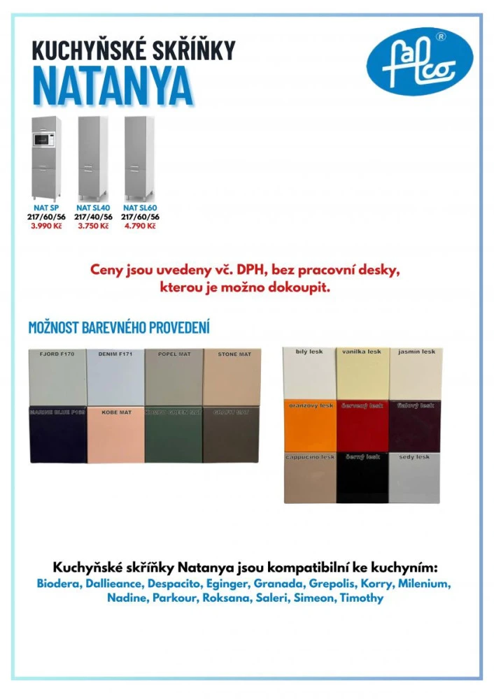 Kuchyňské skříňky Natanya jsou kompatibilní ke kuchyním Biodera, Dallieance, Despacito, Eginger, Granada, Grepolis, Korry, Milenium, Nadine, Parkour, Roksana, Saleri, Simeon a Timothy.