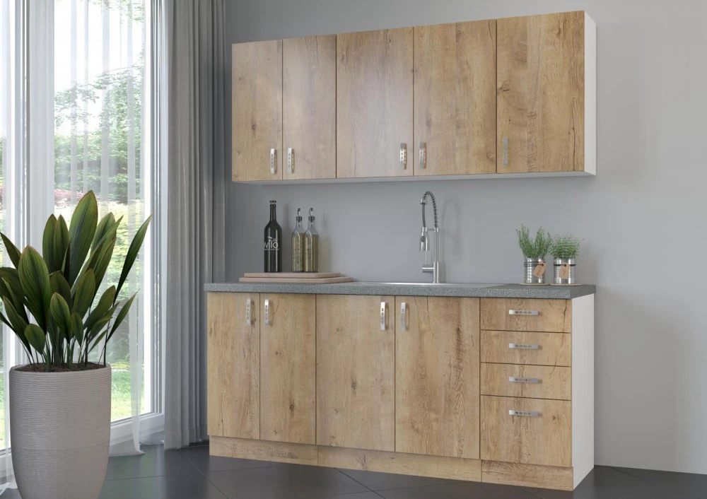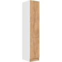 Potravinová skříňka Sally 40 DK je vyrobena z lamina tloušťky 16 mm bílé barvy a s dvířky v odstínu dub lefkas. Vyberte si z naší široké nabídky skříněk a vytvořte si kuchyň dle vlastních představ. Může být rohová, rovná, krátká i dlouhá. Fantazii se meze nekladou. V doplňkových fotografiích najdete pro inspiraci fotky kuchyní, které jsou z těchto skříněk sestaveny. Skříňka je dodávaná v demontu bez pracovní desky. Součástí je montážní plánek včetně všech potřebných spojovacích materiálů.