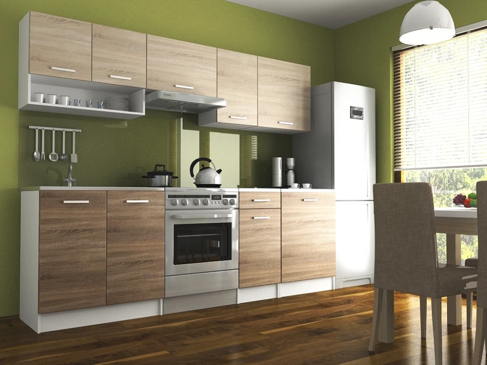 Kuchyňská linka Luigi je ideální volbou pro Vaši kuchyň. Je moderní a zároveň i praktická. Skříňky nabízejí dostatek úložného prostoru. Je vyrobená z lamina, které je odolné a snadné na údržbu. Díky svým rozměrům je vhodná i do malých kuchyní. Skříňky si můžete sestavit libovolně. Kuchyňská linka je dodávaná v demontu. Součástí balení je montážní plánek včetně všech potřebných spojovacích materiálů. Cena je uvedena za sestavu vyobrazenou na úvodní fotografii BEZ PRACOVNÍ DESKY. Kuchyň nabízíme v několika rozměrech i dekorech.Vyobrazené spotřebiče, dřez a dekorace nejsou v ceně.