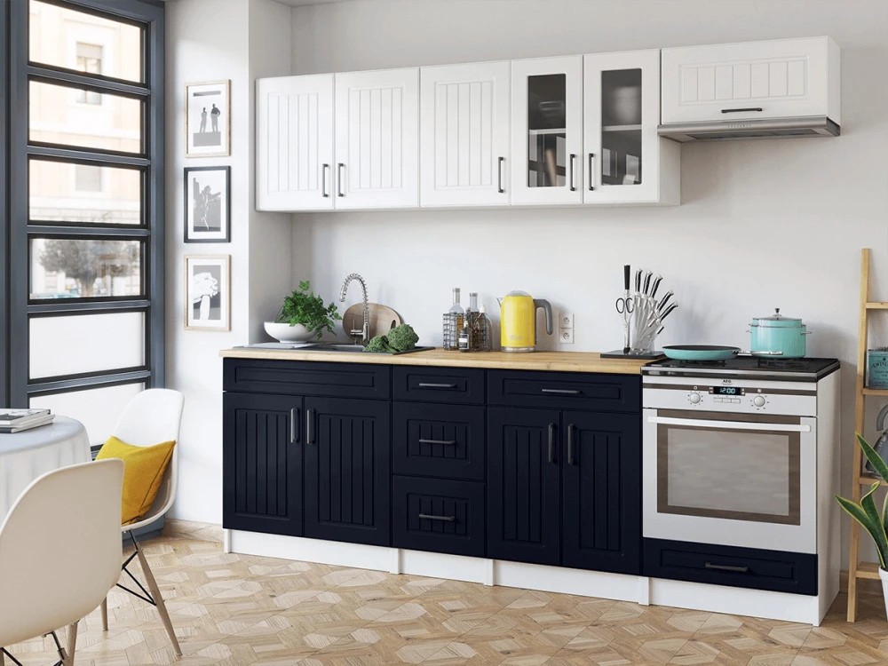 Kuchyňská linka Běla je vyrobená ve velmi oblíbeném venkovském stylu, který se hodí do kuchyně v paneláku i v rodinném domě. Tento styl má jedinečnou schopnost proměnit Vaši kuchyň v útulnou a zároveň funkční místnost, kde bude radost vařit i péct. Kuchyňská linka Běla nabízí dostatek úložného i pracovního prostoru. Všechny skříňky jsou samostatné, takže si je můžete sestavit tak, jak Vám to vyhovuje. Korpusy skříněk jsou vyrobené z lamina 18 mm s hranami ABS a dvířka jsou MDF 16mm. Všechny skříňky jsou dodávány v demontu. Součástí balení je montážní plánek včetně všech potřebných spojovacích materiálů. Cena je uvedena za sestavu vyobrazenou na úvodní fotografii BEZ PRACOVNÍ DESKY, s úchytkami, které jsou vyobrazeny v doplňkových fotografiích. Pracovní desku lze dokoupit nad každou skříňku zvlášť podle její šíře. Vyobrazené spotřebiče, dřez, baterie, doplňky a dekorace nejsou v ceně.