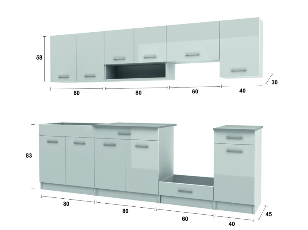 Rozměry vrchních skříněk: