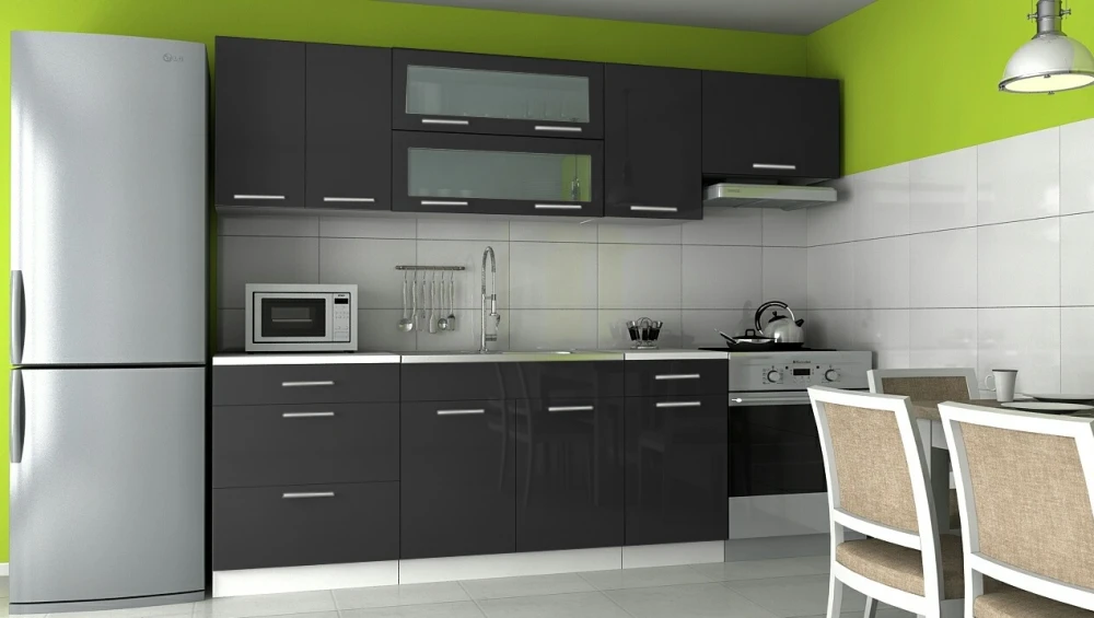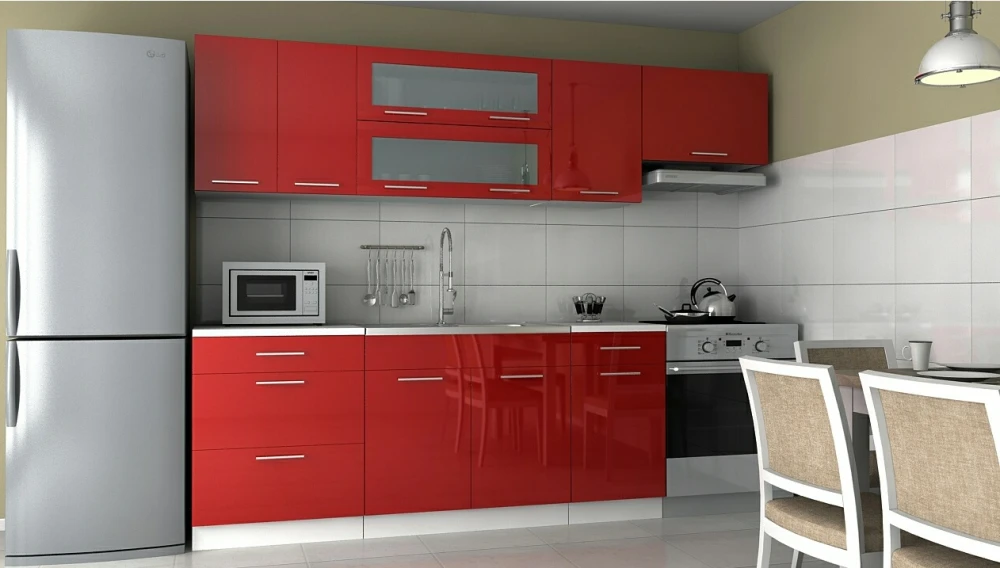 Kuchyňská linka Dakota v moderním designu je ideální volbou pro panelákové kuchyně, ale hodí se i do kuchyní v rodinných domech. Korpusy skříněk jsou bílé, dvířka jsou ve vysokém lesku v několika odstínech. Skříňky jsou dodávány v demontu. Součástí je montážní plánek včetně všech potřebných spojovacích materiálů. Cena je uvedena za sestavu vyobrazenou na úvodní fotografii BEZ PRACOVNÍ DESKY. Skříňky jsou samostatné, takže si kuchyň můžete sestavit buď tak, jak je vyobrazeno na fotografii, nebo si je můžete sestavit podle toho, jak Vám to bude vyhovovat. Spotřebiče,baterie a dekorace nejsou v ceně.