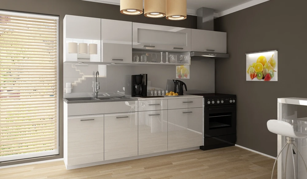 Kuchyňská linka Dolomiti v moderním designu je ideální volbou pro panelákové kuchyně, ale hodí se i do kuchyní v rodinných domech. Korpusy skříněk jsou bílé, dvířka jsou ve vysokém lesku v několika odstínech, takže si určitě vyberete tu nejvhodnější linku pro Vaši kuchyň. Skříňky jsou dodávány v demontu. Součástí je montážní plánek včetně všech potřebných spojovacích materiálů. Cena je uvedna za sestavu vyobrazenou na úvodní fotografii BEZ PRACOVNÍ DESKY. Skříňky jsou samostatné, takže si kuchyň můžete sestavit buď tak, jak je vyobrazeno na fotografii, nebo si je můžete sestavit podle toho, jak Vám to bude vyhovovat. Spotřebiče,baterie a dekorace nejsou v ceně.