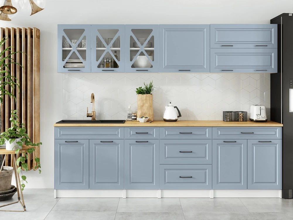 Kuchyňská linka Tyra je vyrobená ve velmi oblíbeném skandinávském stylu, který se hodí do kuchyně v paneláku i v rodinném domě. Tento styl má jedinečnou schopnost proměnit Vaši kuchyň v útulnou a zároveň funkční místnost, kde bude radost vařit i péct. Kuchyňská linka Tyra nabízí dostatek úložného i pracovního prostoru. Všechny skříňky jsou samostatné, takže si je můžete sestavit tak, jak Vám to vyhovuje. Korpusy skříněk jsou vyrobené z lamina 18 mm s hranami ABS a dvířka jsou MDF 16mm. Všechny skříňky jsou dodávány v demontu. Součástí balení je montážní plánek včetně všech potřebných spojovacích materiálů. Cena je uvedena za sestavu vyobrazenou na úvodní fotografii BEZ PRACOVNÍ DESKY, s úchytkami, které jsou vyobrazeny v doplňkových fotografiích. Pracovní desku lze dokoupit nad každou skříňku zvlášť podle její šíře. Vyobrazené spotřebiče, dřez, baterie, doplňky a dekorace nejsou v ceně.