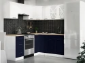 Kuchyňská linka Astra je vyrobená ve venkovském stylu, který se hodí do kuchyně v paneláku i v rodinném domě. Tento styl má jedinečnou schopnost proměnit Vaši kuchyň v útulnou a zároveň funkční místnost, kde bude radost vařit i péct. Rohová kuchyňská linka Astra nabízí dostatek úložného i pracovního prostoru. Kuchyňské skříňky jsou samostatné, takže si je můžete sestavit podle potřeby tak, jak Vám to vyhovuje. Korpusy skříněk jsou vyrobené z lamina 18 mm s hranami ABS a dvířka jsou MDF 16mm. Všechny skříňky jsou dodávány v demontu. Součástí balení je montážní plánek včetně všech potřebných spojovacích prvků. Cena je uvedena za sestavu vyobrazenou na úvodní fotografii BEZ PRACOVNÍ DESKY, s úchytkami, které jsou vyobrazeny v doplňkových fotografiích. Pracovní desku lze dokoupit nad každou skříňku zvlášť podle její šíře. Vyobrazené spotřebiče, dřez, baterie, doplňky a dekorace nejsou v ceně. Kuchyň bude dodaná s bílými korpusy a dvířky v dekóru bílá a tmavě modrá.