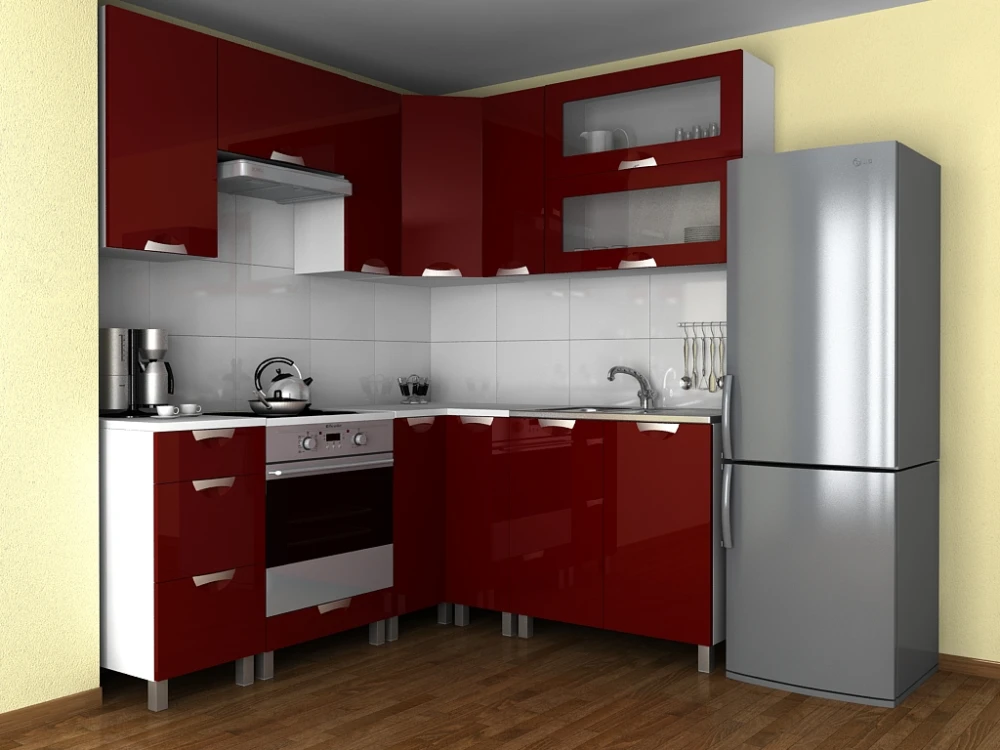 Rohová kuchyňská linka Grepolis KRF bordo lesk