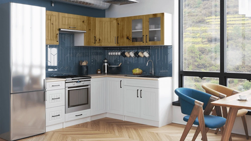 Kuchyňská linka Romana je vyrobená ve venkovském stylu, který se hodí do kuchyně v paneláku i v rodinném domě. Tento styl má jedinečnou schopnost proměnit Vaši kuchyň v útulnou a zároveň funkční místnost, kde bude radost vařit i péct. Rohová kuchyňská linka Romana nabízí dostatek úložného i pracovního prostoru. Kuchyňské skříňky jsou samostatné, takže si je můžete sestavit podle potřeby tak, jak Vám to vyhovuje. Korpusy skříněk jsou vyrobené z lamina 18 mm s hranami ABS a dvířka jsou MDF 16mm. Všechny skříňky jsou dodávány v demontu. Součástí balení je montážní plánek včetně všech potřebných spojovacích prvků. Cena je uvedena za sestavu vyobrazenou na úvodní fotografii BEZ PRACOVNÍ DESKY, s úchytkami, které jsou vyobrazeny v doplňkových fotografiích. Pracovní desku lze dokoupit nad každou skříňku zvlášť podle její šíře. Vyobrazené spotřebiče, dřez, baterie, doplňky a dekorace nejsou v ceně. Kuchyň bude dodaná s bílými korpusy a dvířky v dekóru artisan a bílá.