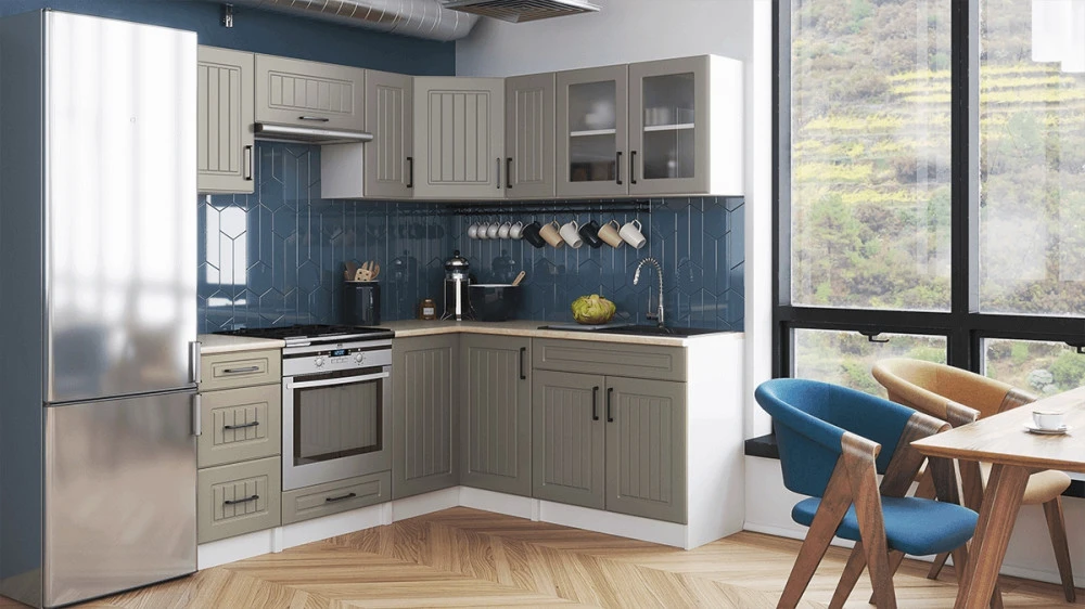 Kuchyňská linka Romana je vyrobená ve venkovském stylu, který se hodí do kuchyně v paneláku i v rodinném domě. Tento styl má jedinečnou schopnost proměnit Vaši kuchyň v útulnou a zároveň funkční místnost, kde bude radost vařit i péct. Rohová kuchyňská linka Romana nabízí dostatek úložného i pracovního prostoru. Kuchyňské skříňky jsou samostatné, takže si je můžete sestavit podle potřeby tak, jak Vám to vyhovuje. Korpusy skříněk jsou vyrobené z lamina 18 mm s hranami ABS a dvířka jsou MDF 16mm. Všechny skříňky jsou dodávány v demontu. Součástí balení je montážní plánek včetně všech potřebných spojovacích prvků. Cena je uvedena za sestavu vyobrazenou na úvodní fotografii BEZ PRACOVNÍ DESKY, s úchytkami, které jsou vyobrazeny v doplňkových fotografiích. Pracovní desku lze dokoupit nad každou skříňku zvlášť podle její šíře. Vyobrazené spotřebiče, dřez, baterie, doplňky a dekorace nejsou v ceně. Kuchyň bude dodaná s bílými korpusy a dvířky v šedé barvě.