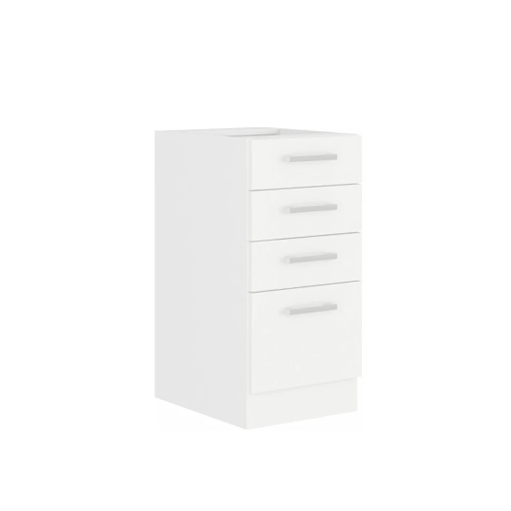 Spodní skříňky jsou dodávány včetně dolní lišty. Pracovní deska není součástí skříněk. Je možné si doobjednat pracovní desku v provedení dub lancelot za 1.450 kč / bm.