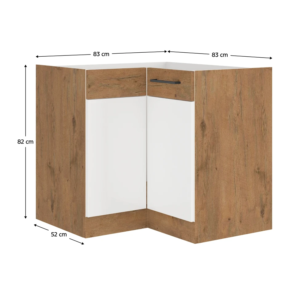 Spodní skříňky jsou dodávány včetně dolní lišty, bez pracovní desky. Možnost dokoupit pracovní desku dub lancelot v ceně: 1.450, - Kč / m. Možnost dokoupit univerzální L / P dřez LAY ON.