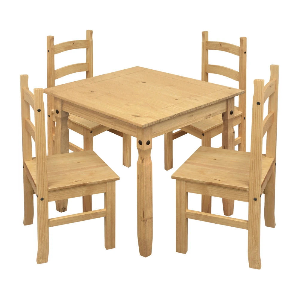 jídelní stůl CORONA 16117 a 4 jídelní židle CORONA 1627 stůl i židle materiál masiv borovice, voskovaná v medovém odstínu rozměr stolu (š/h/v) 78 × 78 × 75 cm, rozměr židle (š/h/v) 42 × 47 × 100 cm součást sestavy Corona 2