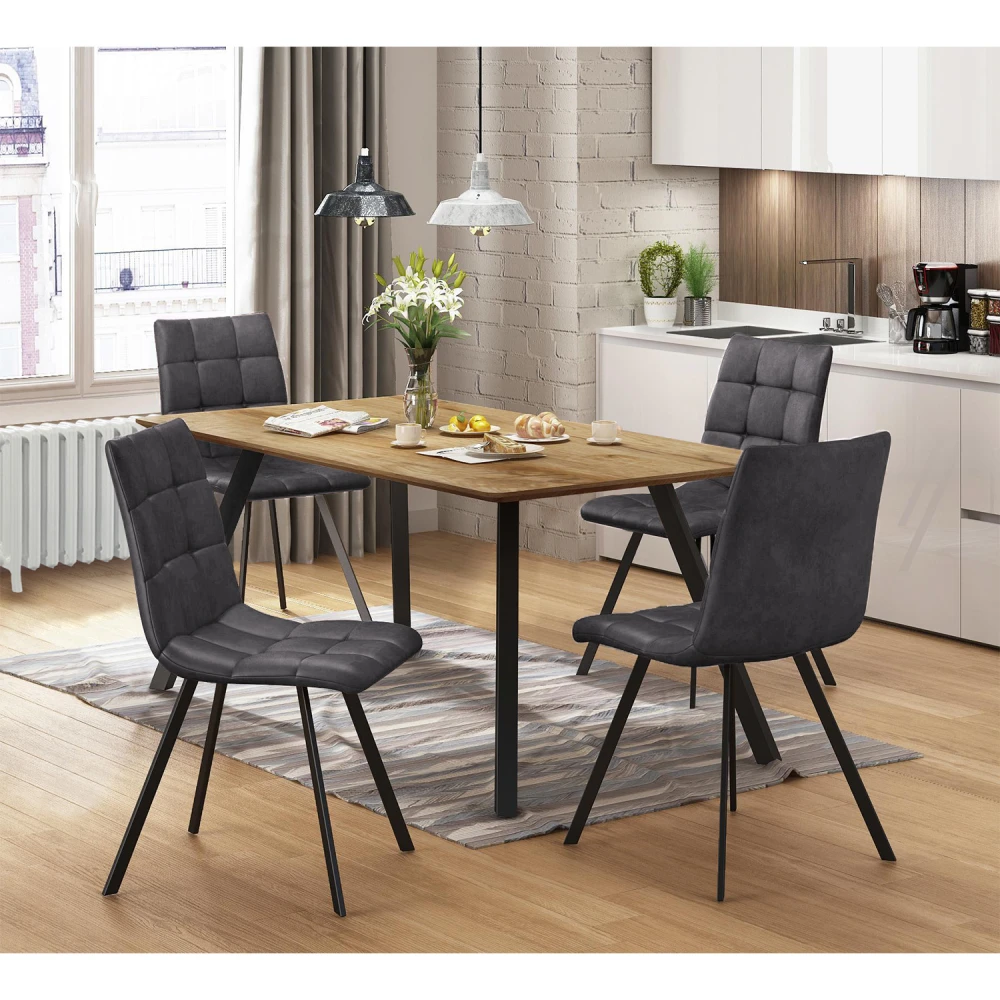 jídelní stůl BERGEN 4090 a 4 jídelní židle BERGEN 4094 stůl kovová konstrukce, barevné provedení černá deska MDF, barevné provedení dub Wotan židle potah broušená kůže – imitace mikrovlákno, barevné provedení antracitová kovová konstrukce, barevné provedení černá, výška sedu 51 cm rozměr stolu (š/h/v) 140 × 80 × 75 cm, rozměr židle (š/h/v) 55 × 45 × 88 cm